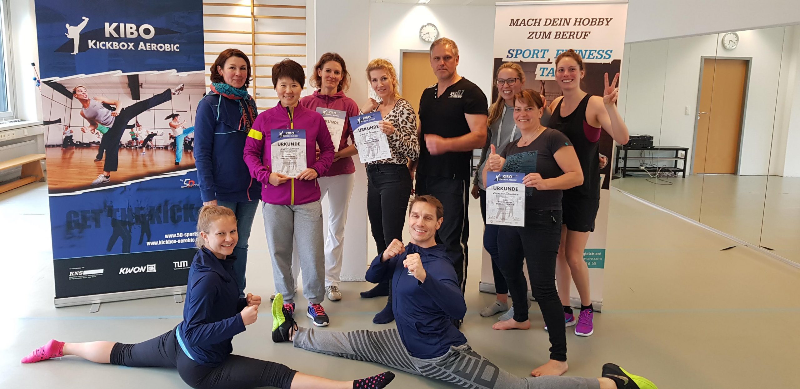 KIBO Kickbox-Aerobic ist eine Marke von 5Dsports. In Kooperation mit der KNS staatlich anerkannten Berufsfachschule für Gymnastik in München, der Kampfsportfirma KWON und der Technischen Universität München bilden wir zum KIBO Instructor aus.
