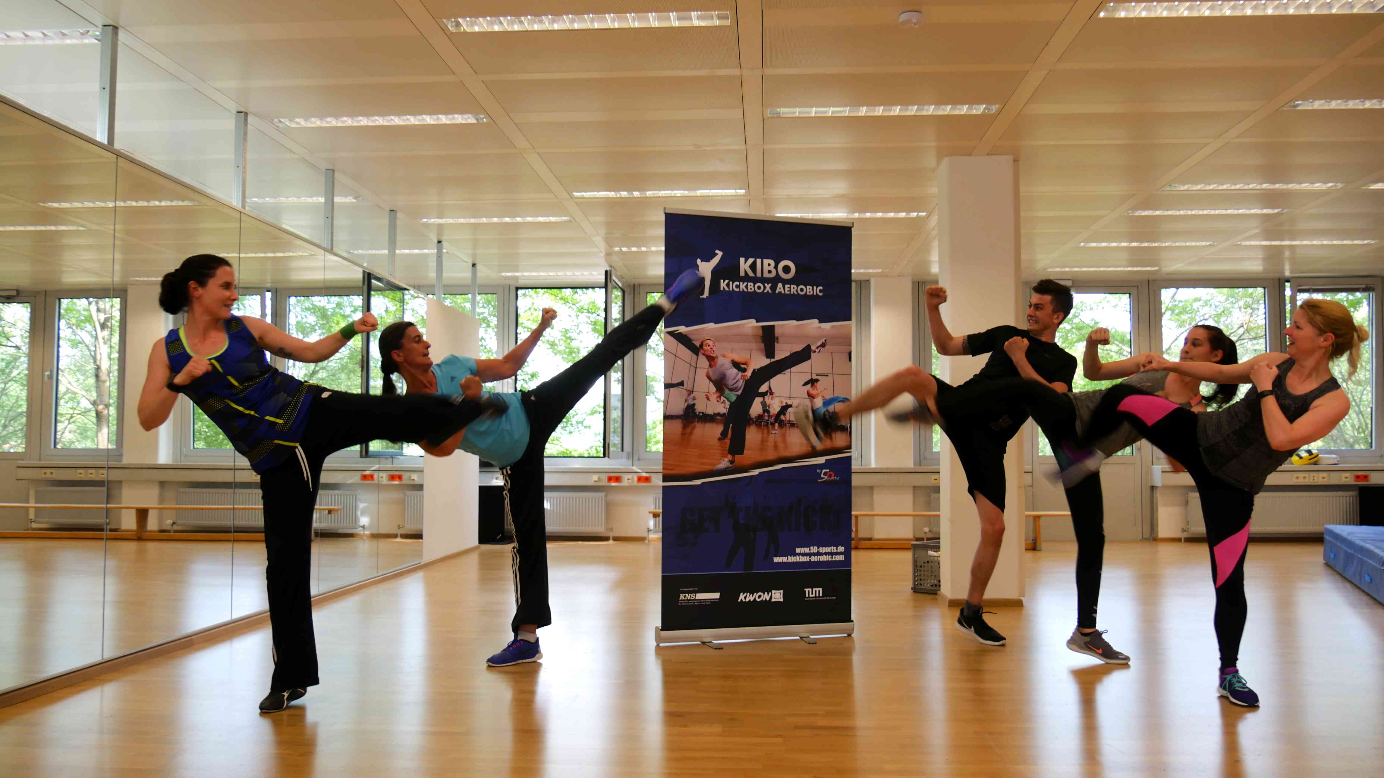 KIBO Kickbox-Aerobic ist eine Marke von 5Dsports. In Kooperation mit der KNS staatlich anerkannten Berufsfachschule für Gymnastik in München, der Kampfsportfirma KWON und der Technischen Universität München bilden wir zum KIBO Instructor aus.